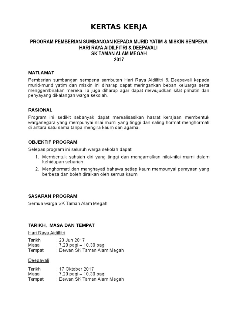 Kertas Kerja Program Bantuan Baju Raya Pdf